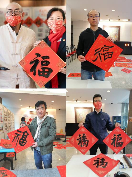 寫春聯(lián)的同事們興致勃勃:“把我們的祝福寫出來,真情傳遞,我們很有幸福感!”接福的同事們紛紛表示:“工會娘家送親情,此心安處是吾鄉(xiāng)。”并把自己的祝福語紛紛貼到了公司的祝愿樹上!