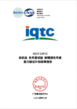 近日,廣紡檢測收到廣州海關(guān)技術(shù)中心組織的IQTC24P12紡織品耐唾液色牢度和IQTC24P07紡織品耐水色牢度能力驗(yàn)證計(jì)劃結(jié)果報告,結(jié)果均為滿意!