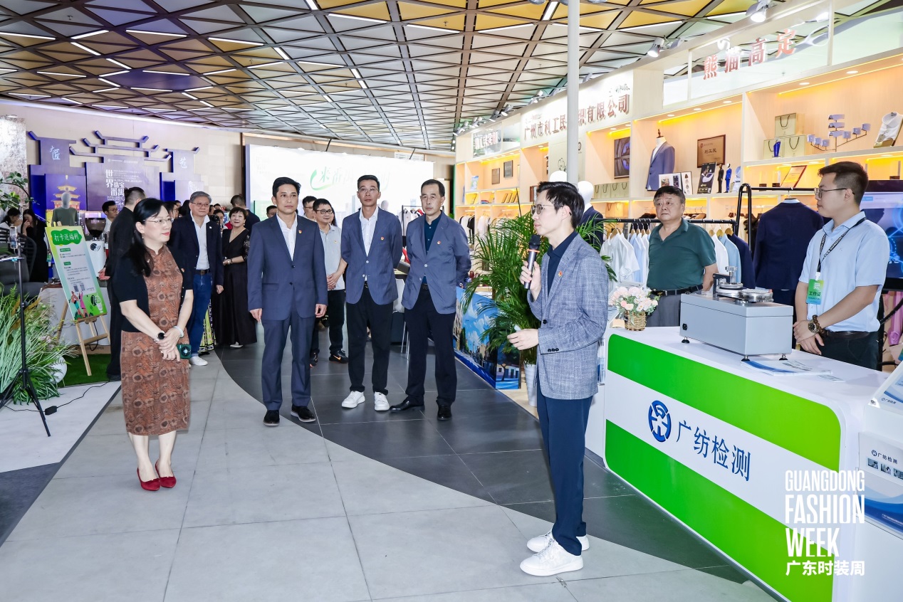 活動(dòng)現(xiàn)場(chǎng),雙方參觀了紡織公司在本次時(shí)裝周設(shè)立的利工民及廣紡檢測(cè)展臺(tái),就如何通過(guò)“黨建 +”模式,持續(xù)探索時(shí)尚產(chǎn)業(yè)與黨建工作的深度融合,攜手打造“紅色時(shí)尚”品牌,傳承非遺文化,力爭(zhēng)在行業(yè)內(nèi)樹(shù)立黨建引領(lǐng)時(shí)尚產(chǎn)業(yè)創(chuàng)新發(fā)展的新標(biāo)桿進(jìn)行了深入探討。與此同時(shí),雙方還聯(lián)合舉辦了主題靜態(tài)展,通過(guò)開(kāi)放式空間展示高級(jí)定制系列產(chǎn)品、提供現(xiàn)場(chǎng)技術(shù)咨詢服務(wù),幫助觀眾深入了解時(shí)尚產(chǎn)品背后的技術(shù)奧秘,讓觀眾近距離感受時(shí)尚與文化融合的魅力。